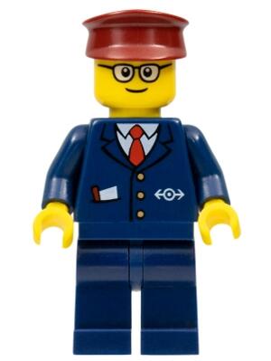 Train Conductor with Dark Blue Outfit, Dark Red Hat and Glasses